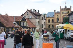 Martins said there is a very nice town in Latvia with a beautiful old town and the widest waterfall in Europe and took us with Bolzano people to see it. There we met with one local Latvian girl, a friend of Martins who was guiding us through the town. Those days there was some kind of celebration of a town with a concert on the main town's square. There me and Veronika bought Latvian colourful sweets made pepper dough, the one they make piparkūkas of (my favourite cookies!). It didn't take us much to see main sightseeing of the town since it was very small, though the town itself was really beautiful, also very green.